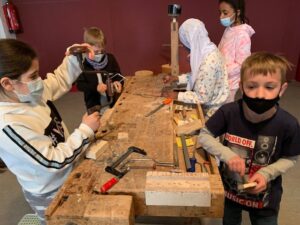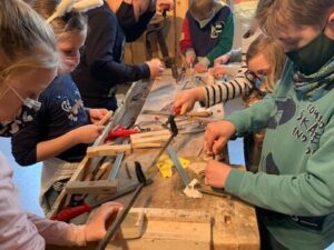 Am 7.4.2022 ging es für die Klassen 2bi und 2ci ins Kindermuseum zu einem Workshop zum Thema Holz.