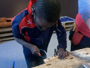 In einer Werkstatt durften die Schüler selbst Hand anlegen: Sie sägten, feilten und steckten Holzteile zu einem Boot zusammen. Dieses konnten sie schließlich schwimmen lassen.