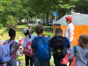 Auf dem Hinweg machten die Klassen einen Stopp an einer Wertstoffinsel und erfuhren viel Wissenswertes über die Mülltrennung und das Recycling der Stadt München. Vielen Dank für den Vortrag von Frau Baum.