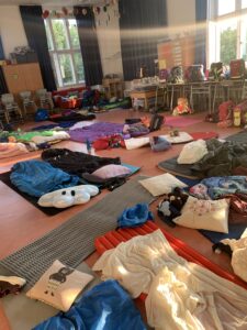Bereits am Nachmittag wurde das Klassenzimmer ausgeräumt, sodass abends alle Kinder einen Platz zum Schlafen finden konnten. Aufgeregt wurden Schlafsäcke ausgerollt, Taschenlampen getestet und Bücher aufgeschlagen.