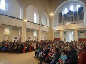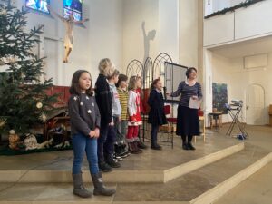 Was im Gottesdienst natürlich nicht fehlen durfte: Weihnachtslieder! Und dass die Kinder diese fleißig geübt hatten, hat man wirklich gemerkt. Viele konnten sie auswendig und alle haben kräftig gesungen. So hatte die Schulfamilie einen schönen Abschluss im alten Jahr 2022, konnte sich auf den Weg in die Ferien machen und mit Gottes Segen ins neue Jahr 2023 starten.