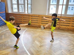 Dafür suchte sich die Klasse „Capoeira“ aus, einen brasilianischen Kampftanz. Das ist eine Mischung aus verschiedenen Übungen zur Koordination, Gleichgewicht, Rhythmik und Musikalität, die spielerisch und tänzerisch mit einem Partner oder alleine eingeübt werden.