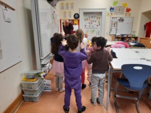 Diese kann er mit einem Tanz aktivieren. Und den probierten die Kinder natürlich gleich selbst aus!