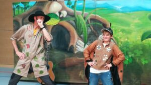 Schnell wurden die Rollen verteilt und die Icho-Kinder, die mitmachen wollten und durften auf die Bühne und wurden dort verkleidet. Da gab es Kurt, den besten Sport- und Musikkäfer der Insektenschule im Bergwald. Und Rita die Raupe, die eines Tages als neue Schülerin in seine Klasse kommt. Sie hat keinen guten Start und wird von Kurt und seiner Kinderinsektenbande geärgert, also von Babsi Biene, Bodo Kartoffelkäfer und Kurt dem Leuchtkäfer. Viktoria die Motte schlägt sich auf Ritas Seite und wird ihre Freundin. Und dann geht das Abenteuer los. Was dann passiert? Das können die kleinen und großen Zuschauer ab hier am besten selbst weitererzählen.