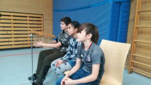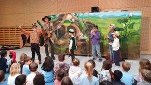 Schon Wochen vor seinem Besuch war das Singen und Summen der einstudierten Lieder in den Klassenzimmern und auf den Gängen zu hören. Mitte Oktober war es dann soweit: Pünktlich mit dem Gong machten sich alle Klassen auf den Weg in die große Turnhalle und wurden dort von Tonni Tanner höchstpersönlich zu ihren Plätzen geführt.