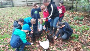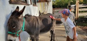 Und schließlich der Besuch des Bauernhofs mit Hühnern, die einem aus der Hand pickten (wenn man sich traute), Ponys zum Striegeln und Eseln zum Führen durchs Gelände – zum Schluss gab’s sogar noch ein Hufeisen als Geschenk für die Klasse – so viel Glück!