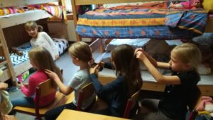Erste Klasse war der Zusammenhalt untereinander: In den Mädchenzimmern wurden Zöpfe im Akkord geflochten und Hörbüchern gelauscht, in den Jungszimmern Verstecken gespielt und Witze erzählt (zu acht in einem Bett) und gemeinsam durch die Gegend gestromert.