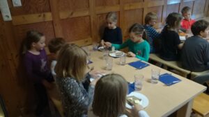 Ein weiterer Höhepunkt war die Party am zweiten Abend, die dank der Discokugel wirklich zur Disco wurde. Tanz- und Ratespielen im Kreis und dazu Chips und Süßes sorgten für beste Stimmung.