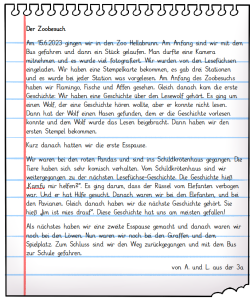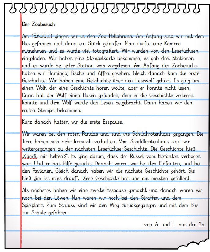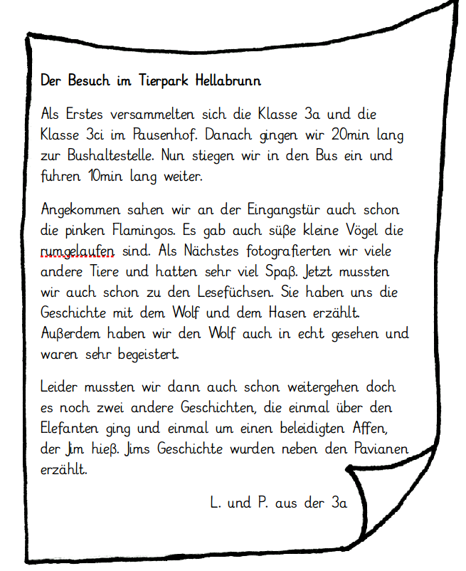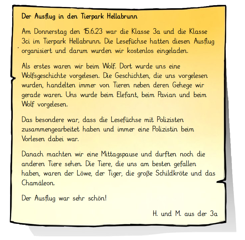 Die Kinder der 3a berichten begeistert von unserem Ausflug (Text zum Vergrößern anklicken):