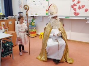 Die Spannung war groß, als es am Vormittag an den Klassenzimmern klopfte und der Nikolaus die Tür öffnete.