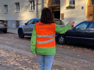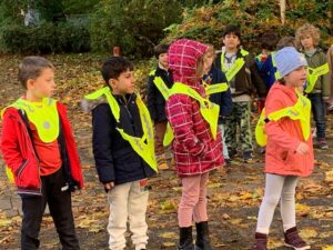 Im Rahmen des HSU-Unterrichts verließen die Schüler der 1bi ihr Klassenzimmer und übten das sichere Überqueren von Straßen. Mit den neuen Westen waren sie auch in der Morgendämmerung gut zu erkennen.
