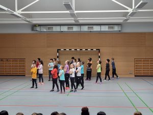 Im März wurde es dann spannend. Endlich war es so weit und sie durften den Tanz vor allen Klassen der Schule vorführen. Und die harte Arbeit hat sich ausgezahlt: das Publikum applaudierte begeistert und forderte sogar eine Zugabe!