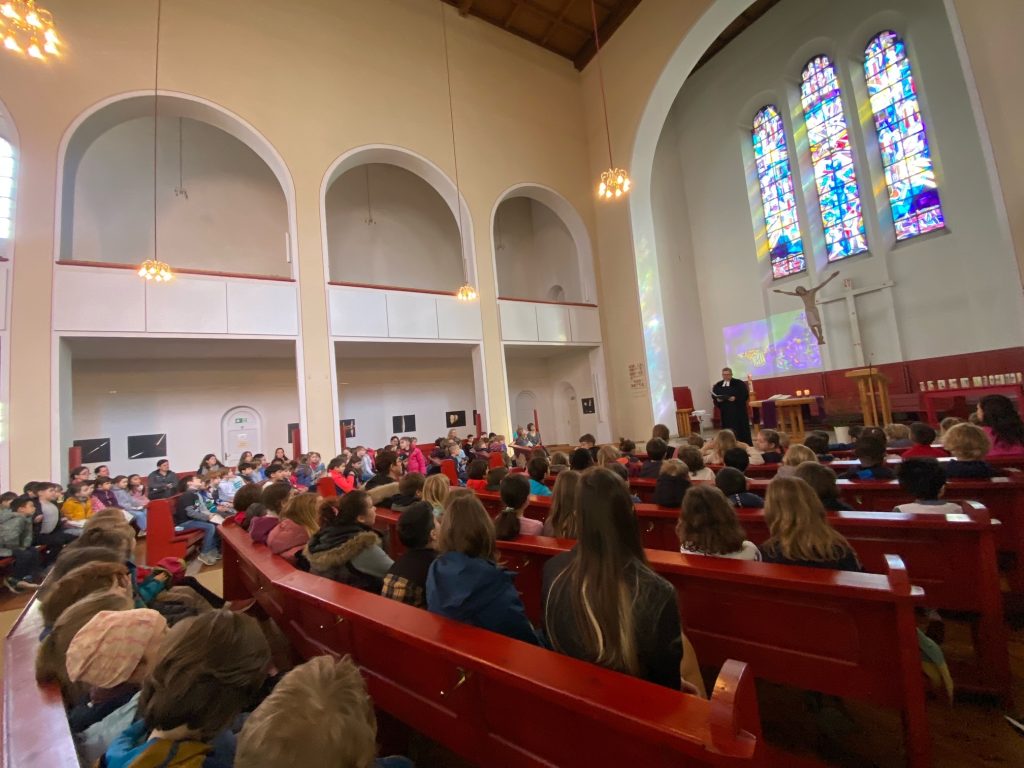 Dieses Schuljahr gab es eine Besonderheit: Nicht nur zum Schuljahresbeginn und zu Weihnachten feierte die Schulfamilie in der Kirche, sondern auch an Ostern.