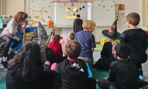 Das fanden auch die Kinder aus der Patenklasse. Die 4a besuchte die Halloween-Party und feierte eine Schulstunde lang mit.