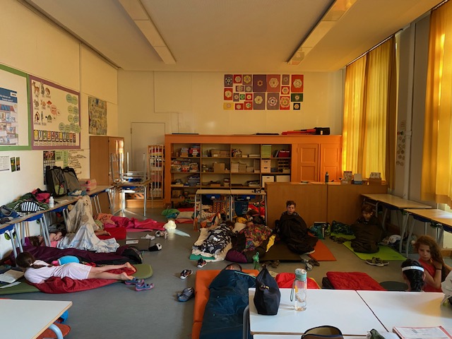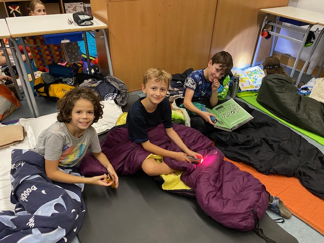 Im Juli übernachteten die dritten Klassen von Donnerstag auf Freitag in der Schule.