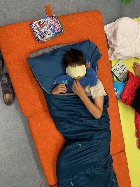 Den ganzen Vormittag schon machte sich die Vorfreude in den Klassenzimmern bemerkbar. Abends war es dann soweit. Nachdem die Schlafplätze gemütlich hergerichtet wurden, wurde noch im Pausenhof gemeinsam gespielt. Abschließend gab es noch einen Kinoabend