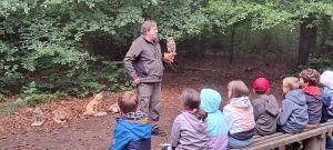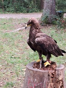 Der Höhepunkt war die Präsentation der Greifvögel wie Bussard, Falke und Adler. Alle staunten über die Größe und Schönheit der Tiere. Sir Henry landete sogar auf den Köpfen von Frau Berger und Frau Hahner. Mit Toben und Spielen im Wald ging der tolle Ausflug zu Ende. Er bleibt sicher in bester Erinnerung!