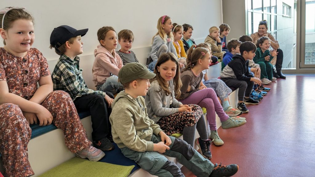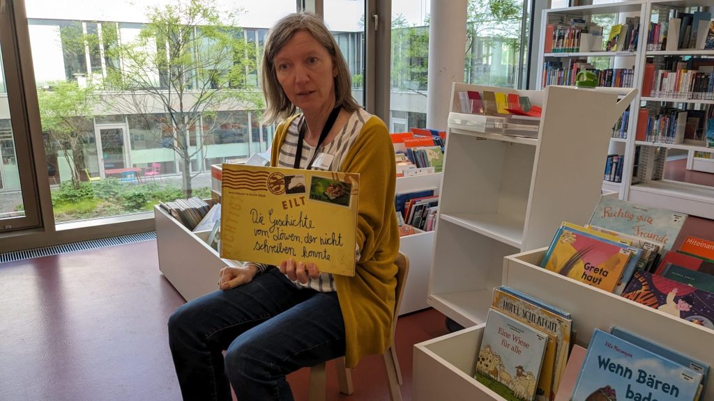 Am 10. Mai 2024 besuchte die Klasse 1bi die Bücherei und wurde zunächst mit dem Bilderbuch „Der Löwe, der nicht schreiben konnte“ in die Lebenswelt des Löwen „entführt“.