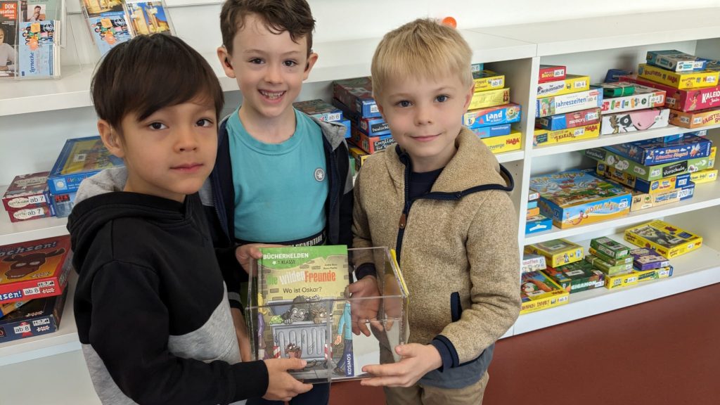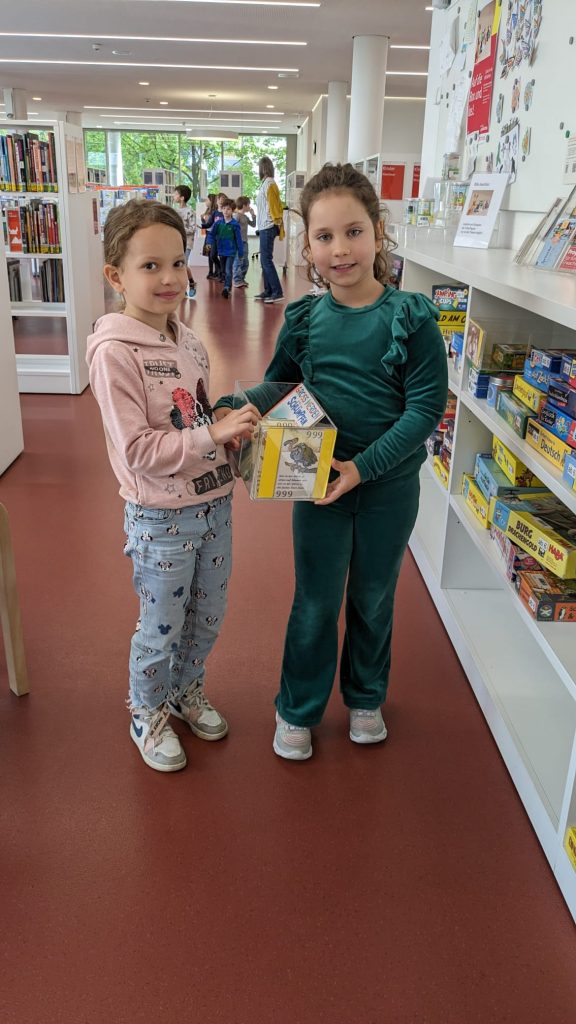 Danach erhielten die Kinder zur Geschichte passende Suchaufträge. Bei der Vorstellung der Fundstücke wurden die verschiedenen Medien der Bücherei wie Bücher, Zeitschriften, CDs, DVDs, Tonies und Spiele gezeigt.