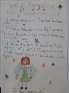 Jeden Tag sind drei bis vier Engel zuständig und unterstützen die Lehrkräfte, die in der großen Pause Aufsicht haben.