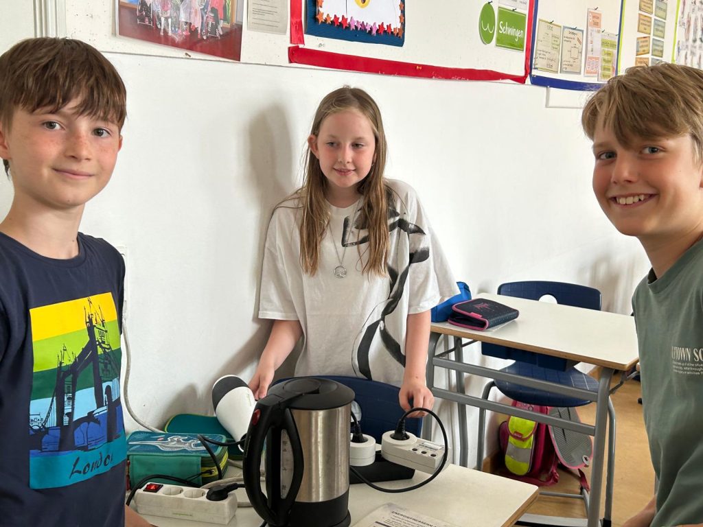 Als Energieforscher durften sie herausfinden, wie viel Strom die verschiedenen Geräte, die sie sie täglich benutzen, verbrauchen. Dabei waren sie erstaunt, dass auch ausgeschaltete Geräte noch Strom verbrauchen.