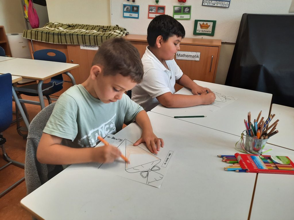 Doch das Wichtigste war das Erlernen der deutschen Sprache. Die Kinder kamen mit ganz unterschiedlichen Voraussetzungen, aber alle lernten dazu und machten große Fortschritte. Sich begrüßen, das Befinden mitteilen und begründen, das Wetter beschreiben, über Kleidung, die Schule oder die Wohnung erzählen – all das war am Ende kein Problem mehr. Auch konnte alle Silben schwingen, Anlaute hören, Mengen und Zahlen erkennen.