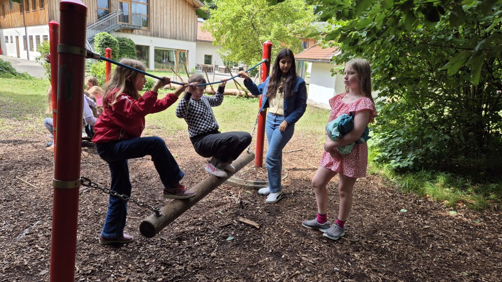 Die Wiesen und der Spielplatz boten zahlreiche Möglichkeiten sowohl zum Toben als auch zum ruhigen Verweilen. Die Kinder spielten Tischtennis, Fußball oder Volleyball, schaukelten oder kletterten.
