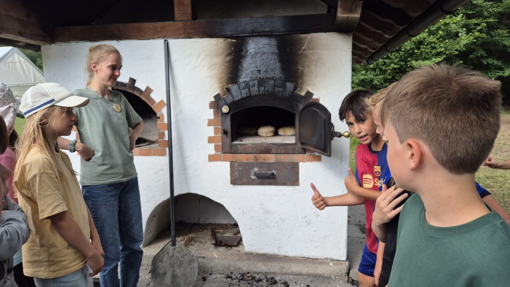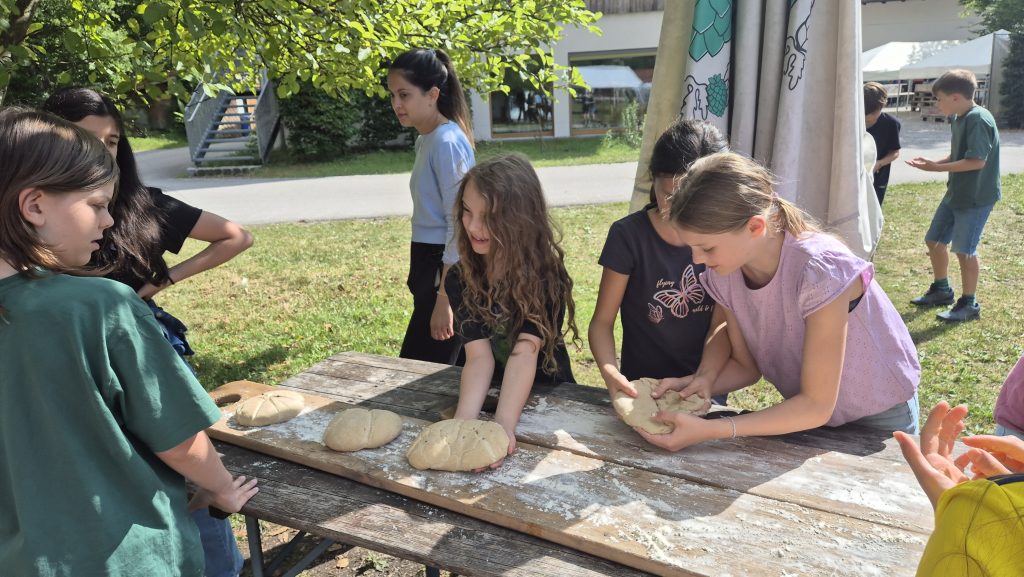 Für den zweiten Tag konnten die Schülerinnen und Schüler zwischen einer Waldexkursion am Vormittag und Brotbacken in einem Steinofen am Nachmittag wählen, wobei die jeweils andere Hälfte der Kinder auf einem spannenden Naturerlebnispfad entlangspazierte. Als es langsam dunkel wurde, lud ein geräumiger Gemeinschaftssaal zu einem Kinoabend mit Popcorn ein.