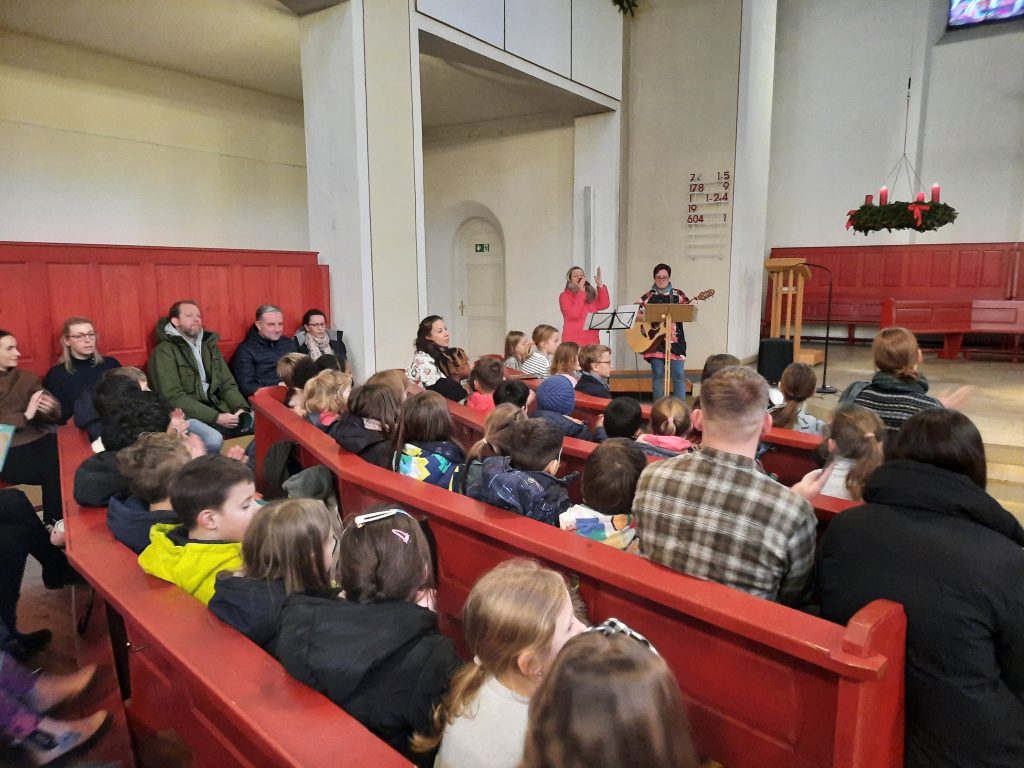 Nach ein paar Worten von Pfarrer Boerschmann zu den Feiertagen, sangen alle zusammen „Oh du fröhliche“, bevor es dann endlich in die heiß ersehnten Ferien ging.