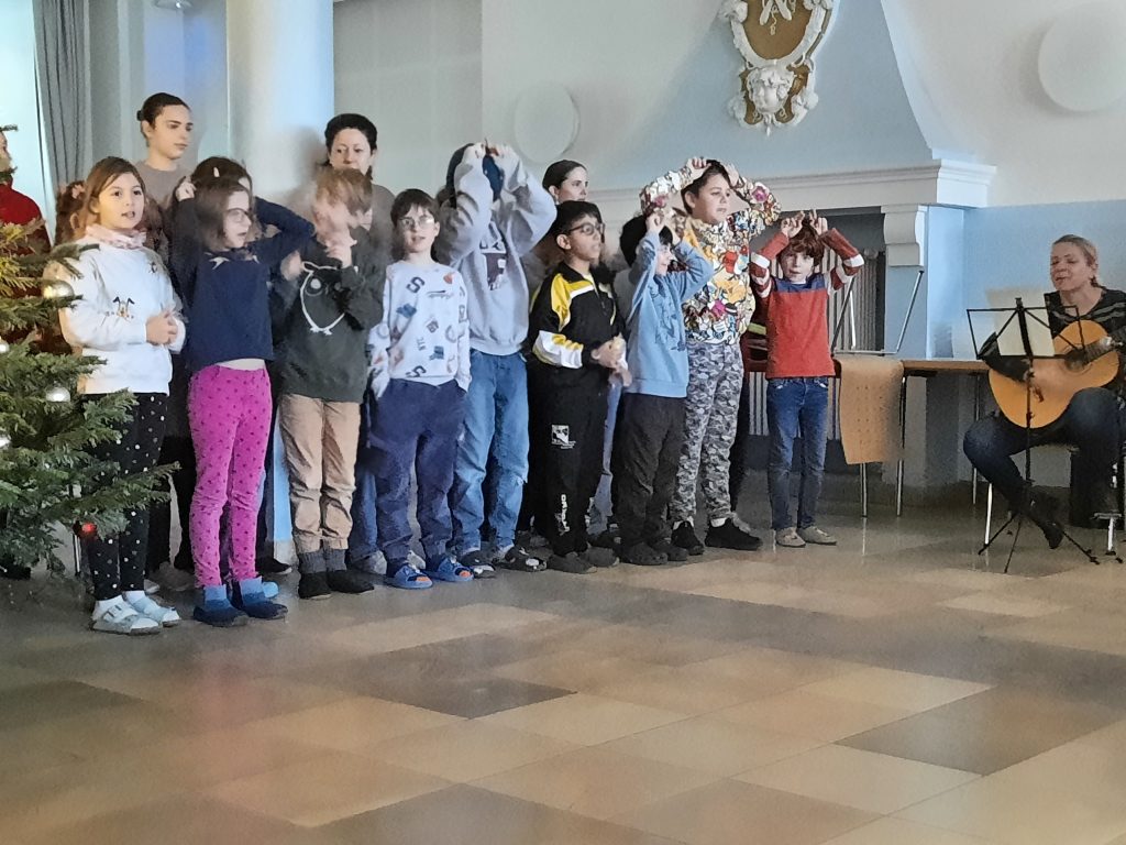Zum Abschluss singen alle Kinder gemeinsam einen Weihnachtsklassiker, etwa „Alle Jahre wieder“. Das ist sehr stimmungsvoll!