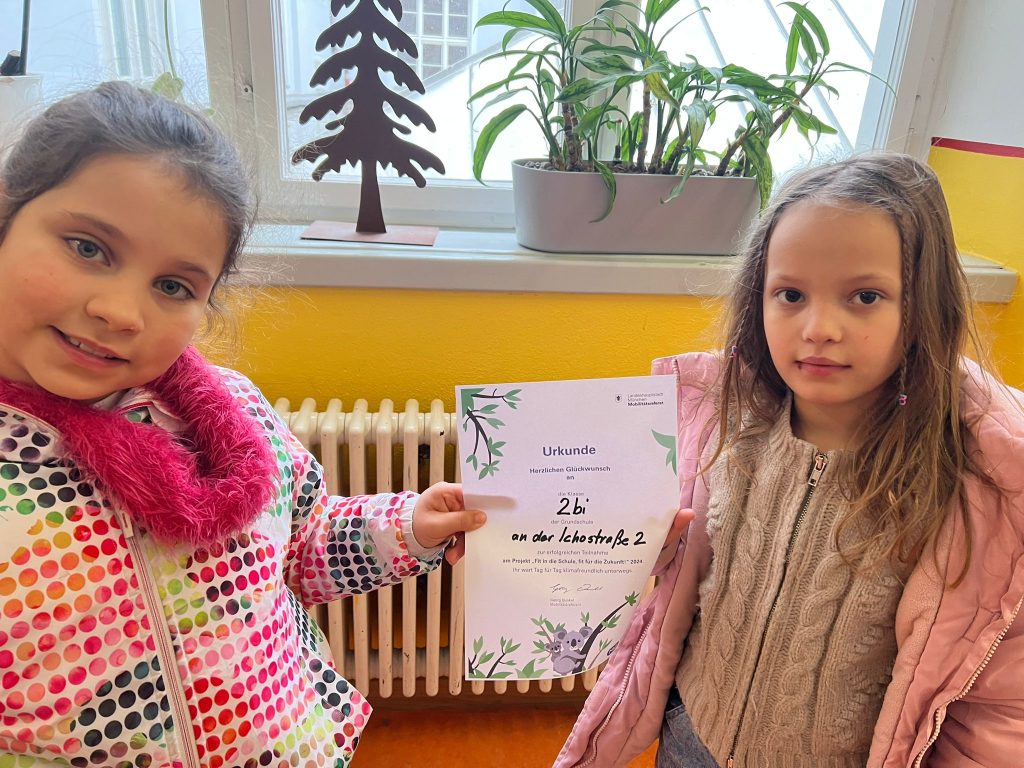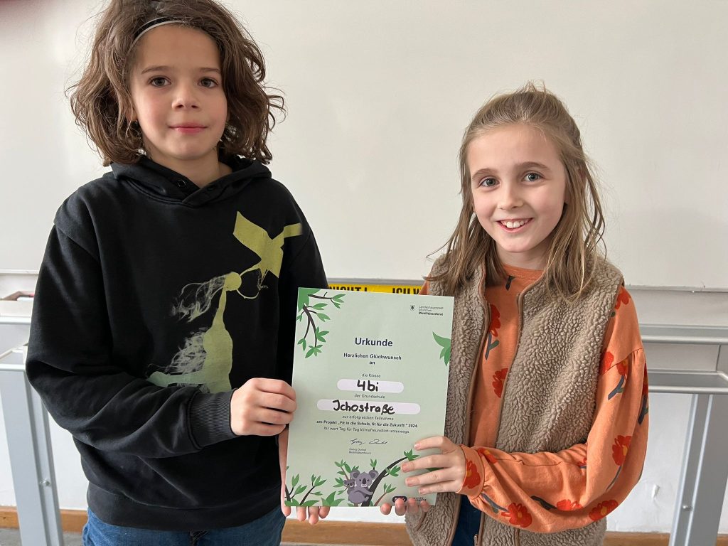 Jede teilnehmende Klasse hat eine Urkunde erhalten und die Schule schmückt nun eine Umweltplakette. Unter folgendem Link freuen sich die Organisatoren dieses Projekts, das Mobilitätsreferat, über die Teilnahme an einer freiwilligen Elternbefragung.