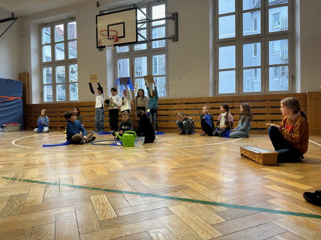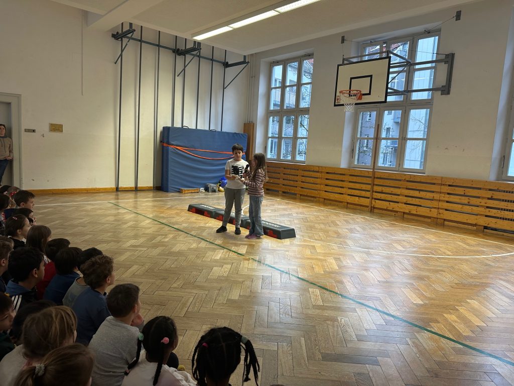 Die Klasse 4a beendete die Schulversammlung mit einem positiven Rückblick auf die letzten Wochen.