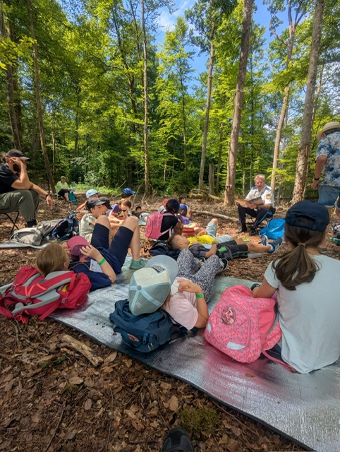 Gemeinsam mit rund 200 anderen Grundschülern erlebten die Kinder am 3. Juli einen aufregenden Vormittag voller Natur, Geschichten und Abenteuer. An insgesamt drei besonderen Vorlesestationen, liebevoll gestaltet von Ehrenamtlichen und Münchner Polizeibeamten, lauschten die Kinder fantasievollen Erzählungen – zum Beispiel an magischen Orten wie der „Huteeiche“ oder „Bei den klingenden Hölzern“.