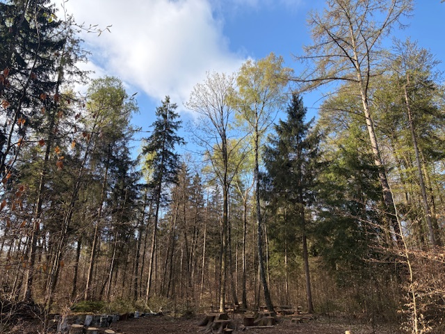 Ein Blaumeisen- Sprechkanon, Freispiel-Zeit und ein Gruppenspiel rundeten den Tag ab, denn wir mussten rechtzeitig zum Mittagessen (Heiß ersehnt, denn Wald macht hungrig!) zurück sein. Es war wirklich schön zu sehen, dass einige Kinder auf dem Rückweg bereits herumliegenden Müll einsammelten und in unseren Müllbeutel warfen. Sie hatten die Regel „Wir bringen nichts in den Wald hinein und nehmen nichts daraus mit.“ schon so verinnerlicht, dass sie auch fremder Müll zurecht störte. Die „Nicht sprechen – nur schauen und lauschen“ Challenge für den Rückweg schafften wir erstaunlich gut.