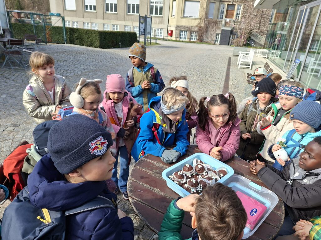 Zum Abschluss des Ausflugs suchten wir uns ein gemütliches Plätzchen im Freien. Ein Geburtstagskind aus unserer Klasse hatte Muffins mitgebracht, die wir gemeinsam genossen.