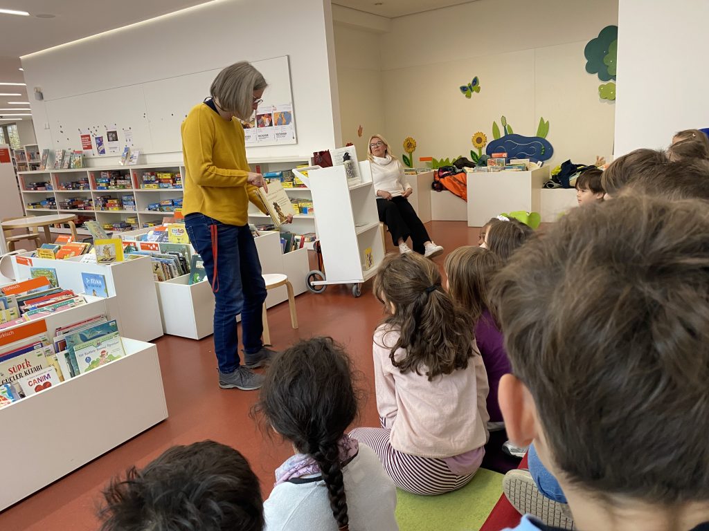 Dort wartete eine spannende Lesegeschichte über einen Löwen, der nicht schreiben konnte, auf sie. Mit tatkräftiger Unterstützung der Schülerinnen und Schüler las die Bibliothekarin das gleichnamige Buch vor. Nach dem Zuhören durften die Kinder selbst auf Entdeckungstour gehen. In kleinen Gruppen erforschten sie die Bibliothek.