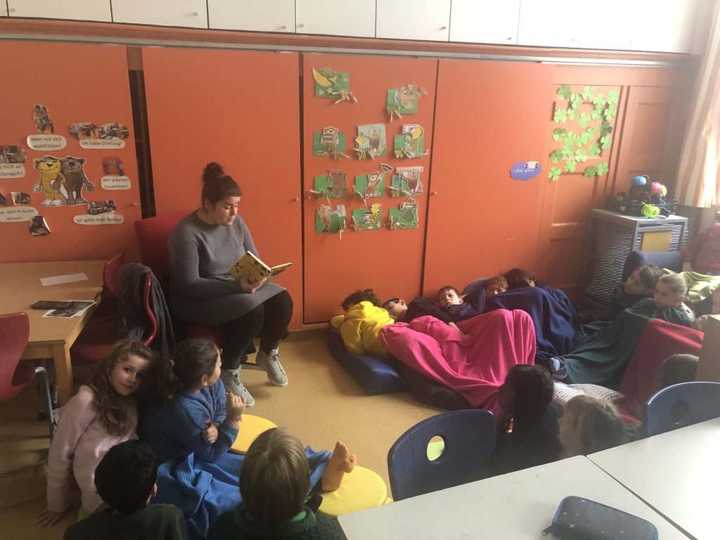 In allen Klassen wurde aus verschiedenen Kinderbüchern vorgelesen: Pumuckl, Urmel aus dem Eis, die Olchis, Nur mal schnell das Faultier wecken oder Ich, Zeus und die Bande vom Olymp. Die Schülerinnen und Schüler lauschten gespannt, lachten über lustige Stellen und tauchten tief in die Geschichten ein.