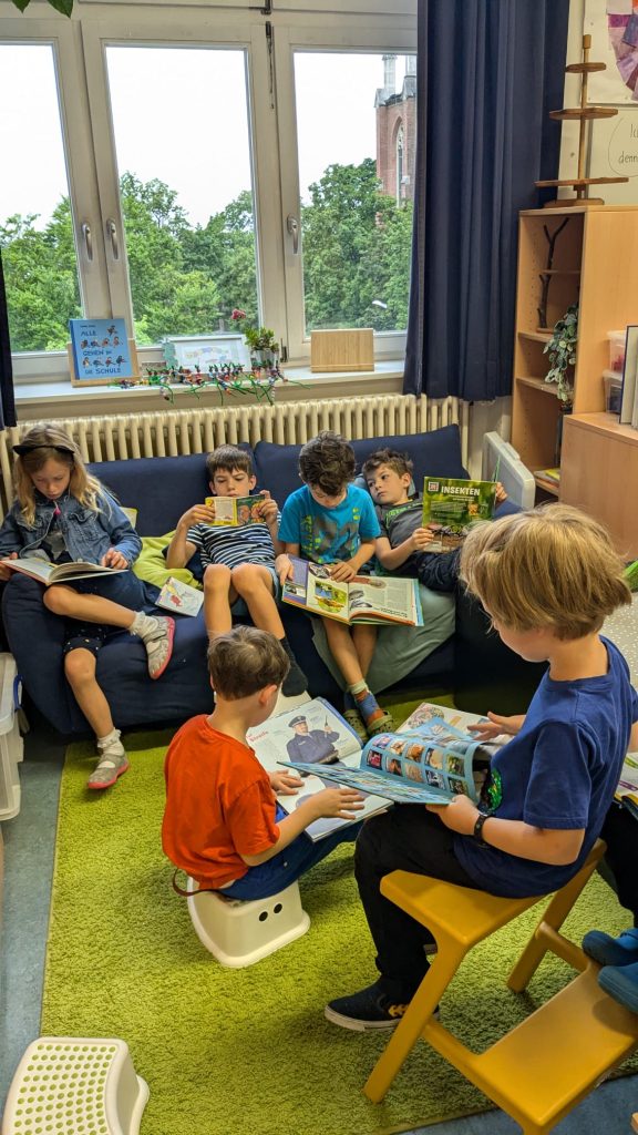 Nach einem Jahr intensiver Fortbildung der Lehrkräfte sind wir seit 2023 offiziell „Leseschule“. Durch tägliche Lesezeit in allen Fächern: