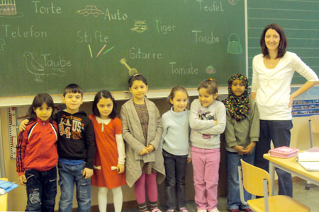Fester Bestandteil unseres Förderkonzeptes ist der Deutschförderunterricht. Er ist ein Zusatzangebot für Schülerinnen und Schüler, die zweisprachig aufwachsen. Im Deutschförderunterricht werden maximal 9 Schülerinnen und Schüler in ihrer Ausdrucksfähigkeit im Deutschen geschult. Durch gezielte Sprechanlässe erweitern die Kinder ihren Wortschatz, vertiefen ihr Sprachgefühl und gewinnen intensiven Einblick in die grammatikalische Struktur der deutschen Sprache. Leseförderung und Rechtschreibschulung gehören ebenso zum Trainingsprogramm. Die jeweilige Klassenlehrkraft wählt aus ihrer Klasse die Kinder aus, die den Förderunterricht benötigen.