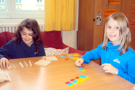 Der Förderunterricht Mathematik richtet sich an alle Schülerinnen und Schüler, die Probleme in diesem Fach haben. Die Kinder werden in einer kleinen Gruppe von bis zu 9 Kindern individuell gefördert, um ihre Fähigkeiten und Fertigkeiten im Bereich Mathematik zu wiederholen, zu vertiefen und zu erweitern. Ein breites Spektrum an strukturiertem Freiarbeitsmaterial und verschiedene offene Unterrichtsformen sowie der Einsatz von ausgewählter Lernsoftware sorgen für Individualisierung und Veranschaulichung.