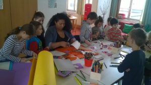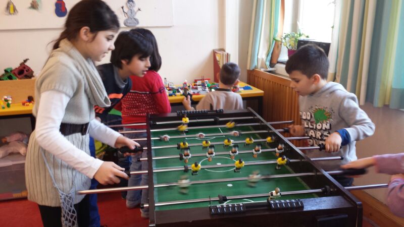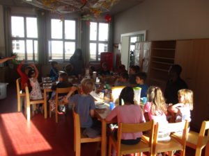Nach einem stärkenden Mittagessen wird gemeinsam in der Gruppe entschieden, wie der Tag gestaltet werden soll. Die Kinder gehen mit den BetreuerInnen zum Toben und Spielen in diverse Gruppenräume, in die Turnhalle, in den Pausenhof oder auf die angrenzenden Spielplätze. Zudem gibt es ein breit gefächertes Angebot an künstlerisch-kreativen und sportlichen Workshops.